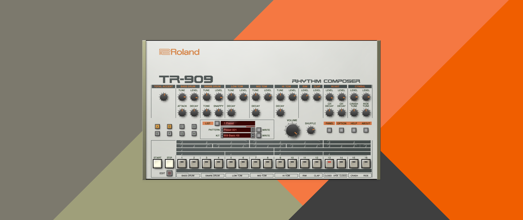 While developing the TR-909 plug-in, we took the opportunity to improve on the original hardware while keeping the authentic experience intact. Our software version takes the sonic powers of the TR-909 to new levels with an advanced multi-lane sequencer, adjustable panning, and individual instrument gain controls that allow you to overdrive the circuits for in-your-face punch. Opening the sophisticated Edit view gives you independent step sequencer lanes per drum instrument, each with its own mute, solo, shuffle, and last-step settings. There are also per-step articulations, including weak hits, nine types of flams, and three types of sub steps for super-intricate patterns